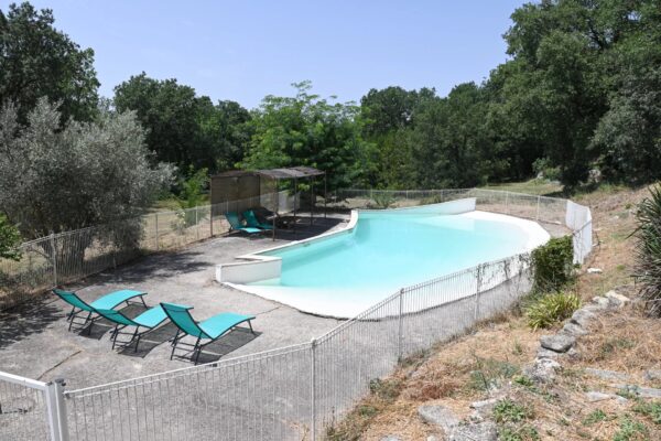 Maison de 110 m², trois chambres sur terrain de 2280 m² avec piscine au calme.