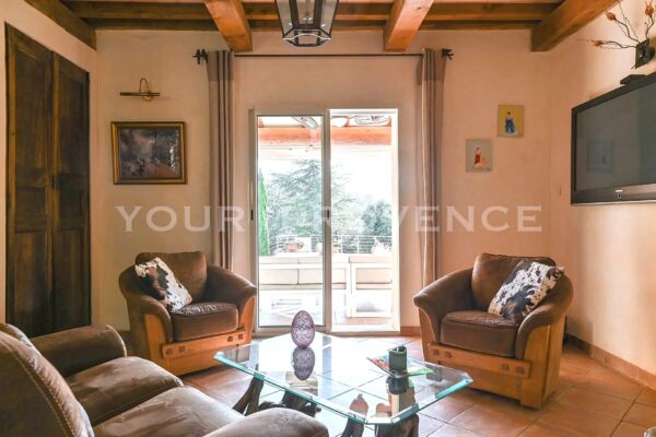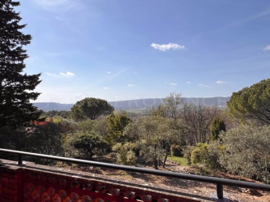 A deux pas du village de Goult, maison avec vue dominante sur le Luberon, 4 chambres, grand garage et piscine.