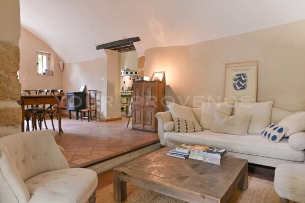 Au pied du Luberon, belle maison de village de 140 m2, 3 chambres, 2 séjours, piscine, et oliveraie sur un terrain de 1170 m2 au calme.