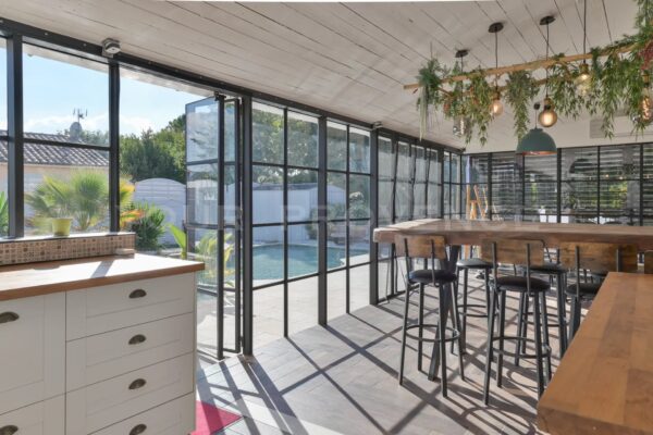 Villa de 127 m², 3 chambres, sur jardin de 1000 m² avec piscine, atelier et garage.